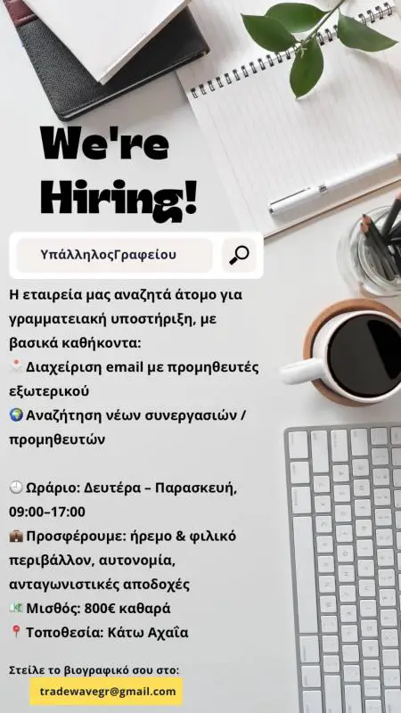 💼 Προσφέρουμε: ήρεμο & φιλικό περιβάλλον, αυτονομία, ανταγωνιστικές αποδοχές