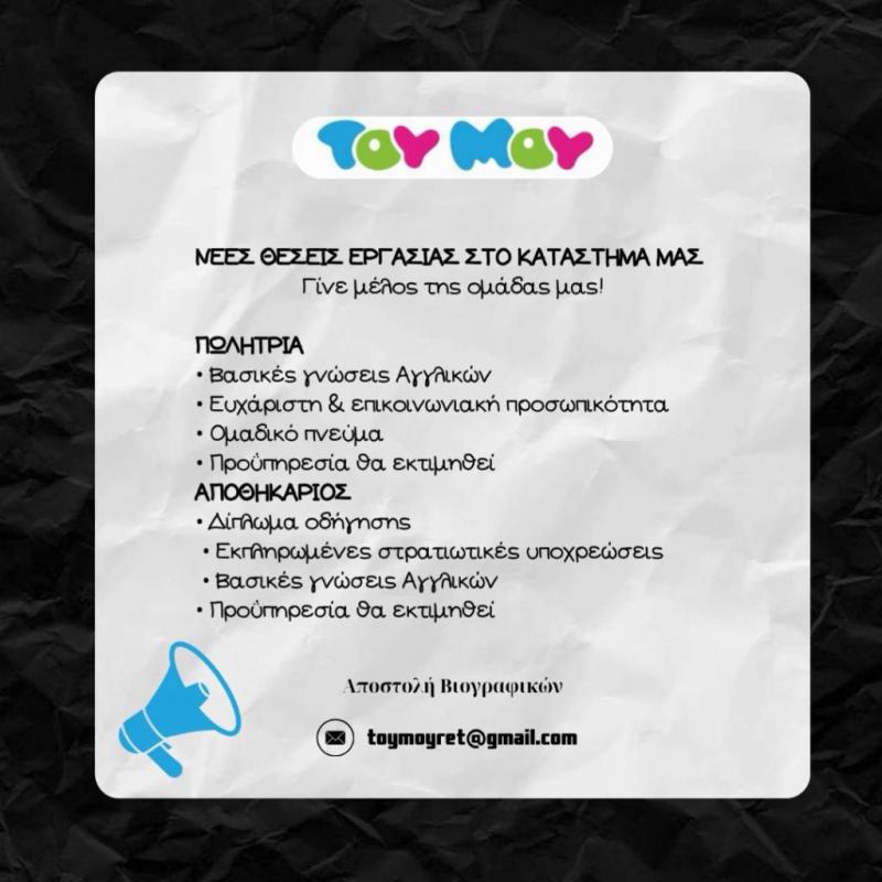 ΝΕΕΣ ΘΕΣΕΙΣ ΕΡΓΑΣΙΑΣ ΣΤΟ ΚΑΤΑΣΤΗΜΑ ΜΑΣ