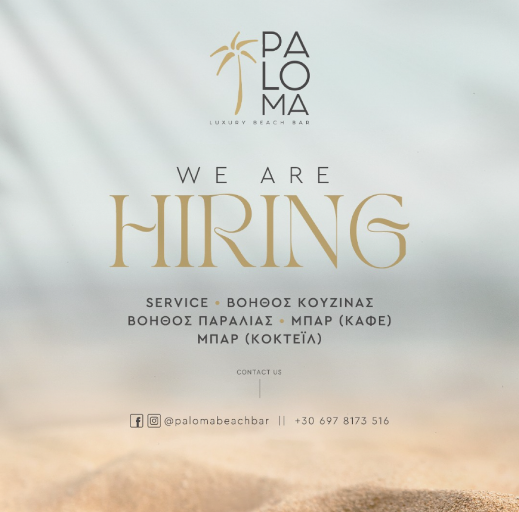 Το Paloma Beach Bar ετοιμάζεται για μια ακόμα αξέχαστη καλοκαιρινή σεζόν και αναζητά νέα πρόσωπα για να ενισχύσει την ομάδα του για το 2026!